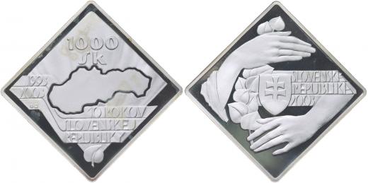 1000 Sk 2003 - 10.výr. vzniku Slovenské republiky, Aurea48. _orig.kapsle + etue + certifikát