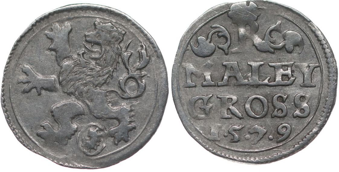 Malý groš 1579, K.Hora-Šatný, HN.1a, Ja.6a (bez opisu)