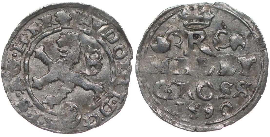 Malý groš 1590, K.Hora-Šatný, HN.1b (opis 7a), Ja.6b_dr.ned.