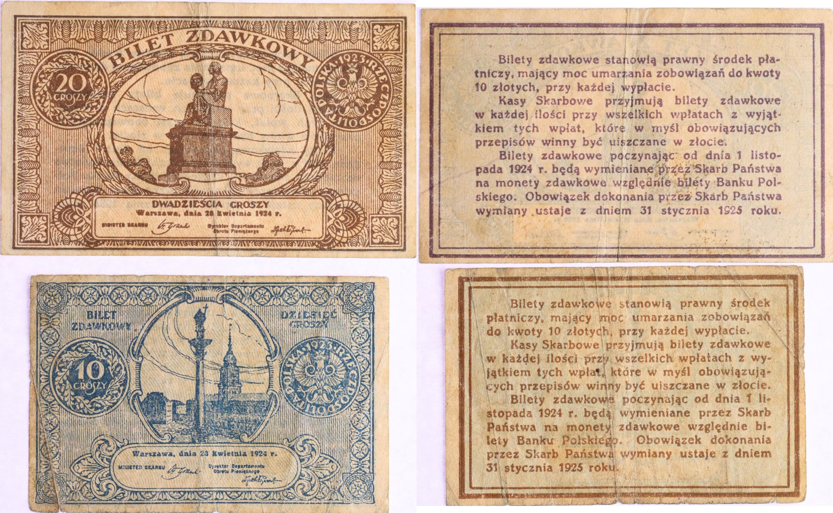 Bilet Zdawkowy - 10, 20 Groš 28.4.1924, P.44, 45_2ks