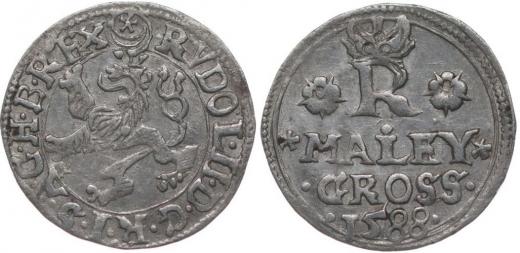 Malý groš 1588, Jáchymov-Hoffmann, HN.8a (opis 7c), varianta nápisu: "* MALEY */· GROSS·/·1588 ·"