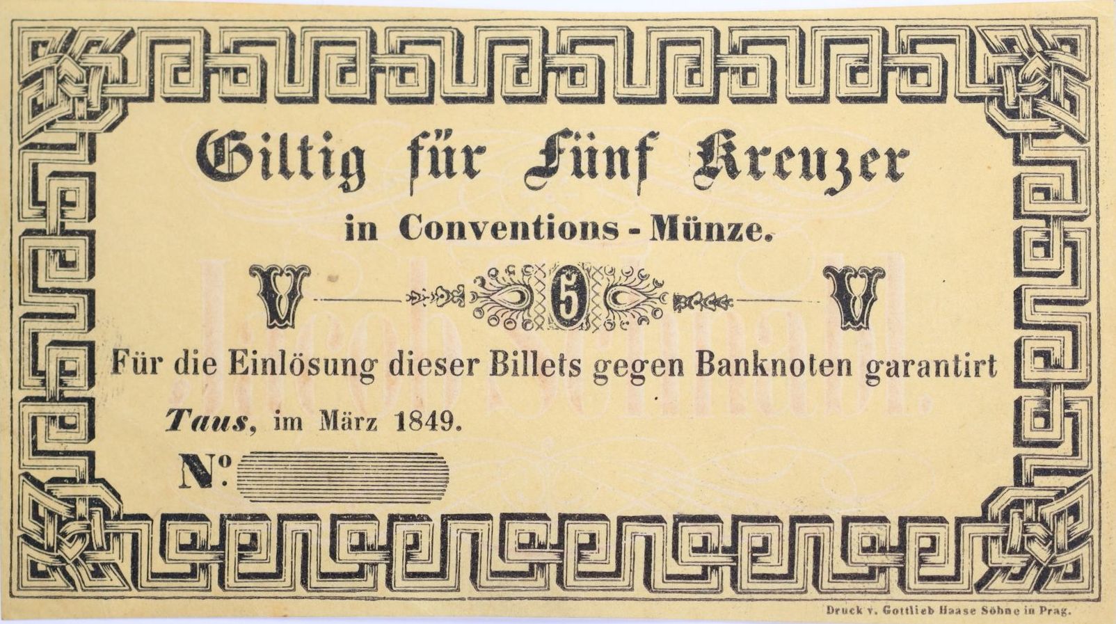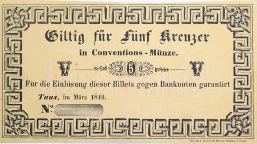 Domažlice (Taus) - 5 Kr.C.M. III.1849, Jacob Schnabl bez čísla a podpisu, V-R.1310.06.01 R!