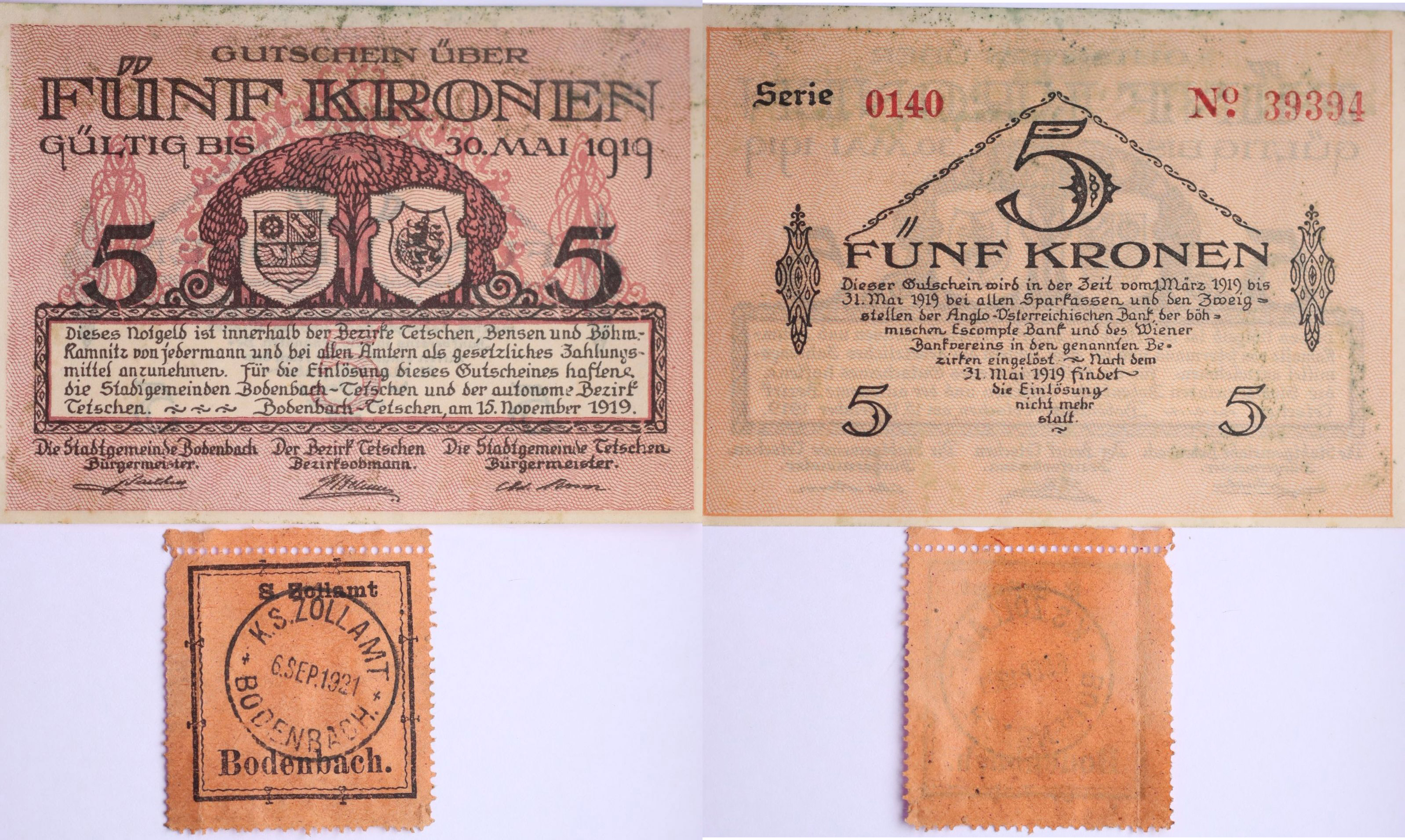 Podmokly - Děčín (Bodenbach - Tetschen) - 5 Kor.15.11.1919 sér.140, č.39394, DH.12.1/1c Celní zálepka / pečeť BODENBACH 6.9.1921, kruh.razítko