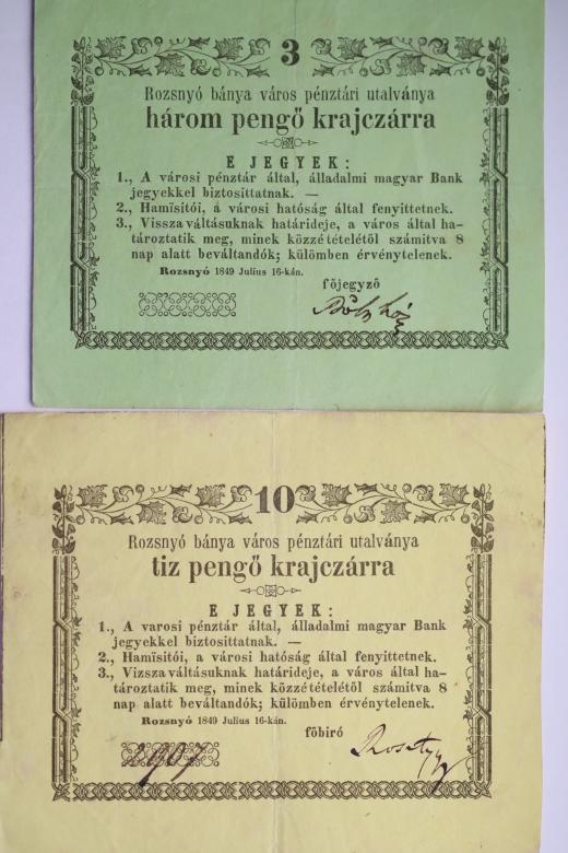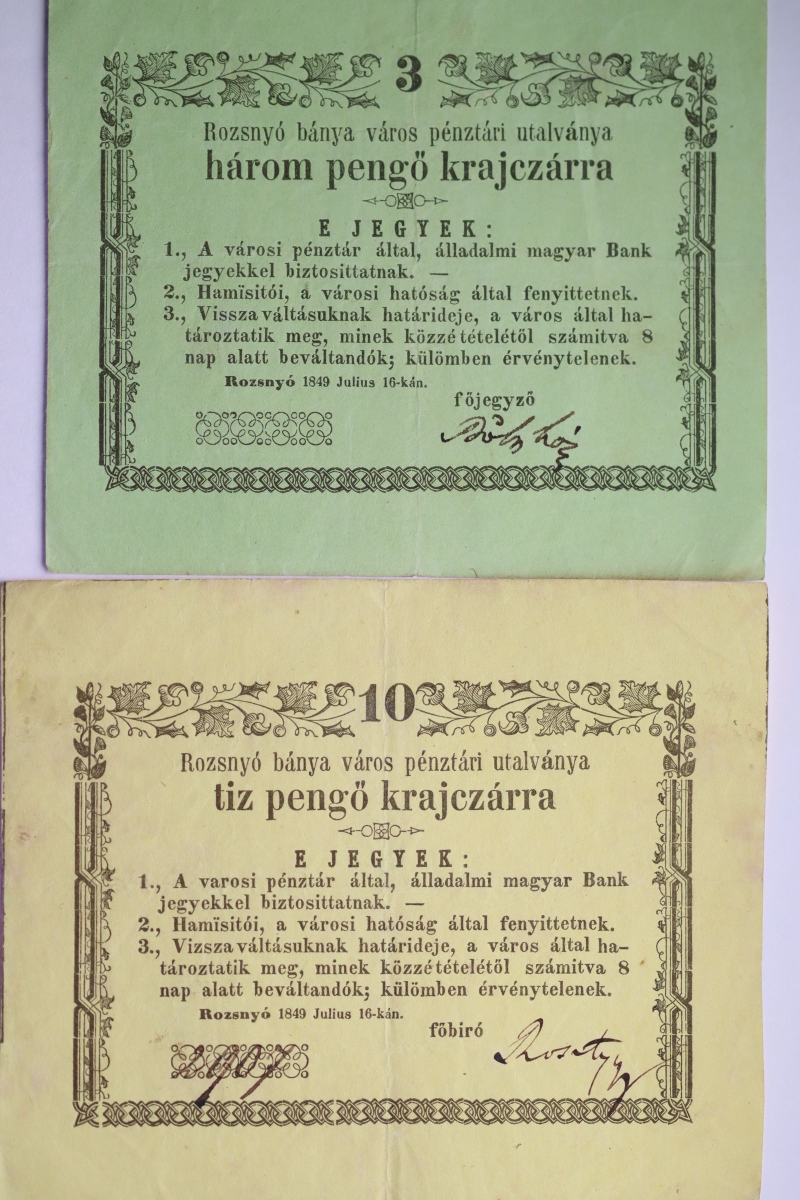 Rožňava (Rozsmyó) - 3 Krejcar 16.7.1849, Vizsza bez čísla, Adam.Roz.1.2.1 Rožňava (Rozsmyó) - 10 Krejcar 16.7.1849, č.2907, Vizsza Adam.Roz.1.4.4