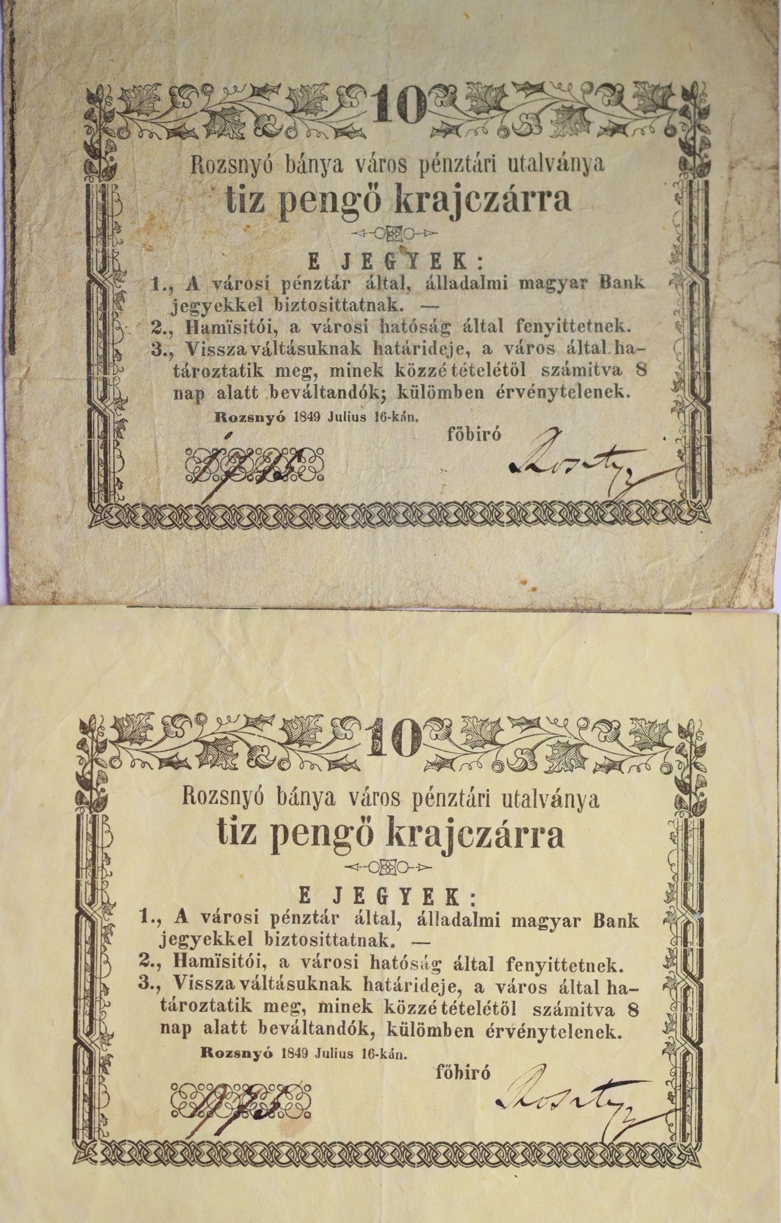 Rožňava (Rozsmyó) - 10 Krejcar 16.7.1849, č.1745, Adam.Roz.1.4 Rožňava (Rozsmyó) - 10 Krejcar 16.7.1849, č.975, Adam.Roz.1.4.2