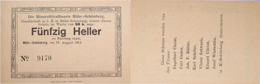 Šumperk (M.Schönberg) mineral.raf., 50 Heller 11.8.1914, č.9170 bez razítka, bez podpisu, DH.120.2.1a.n