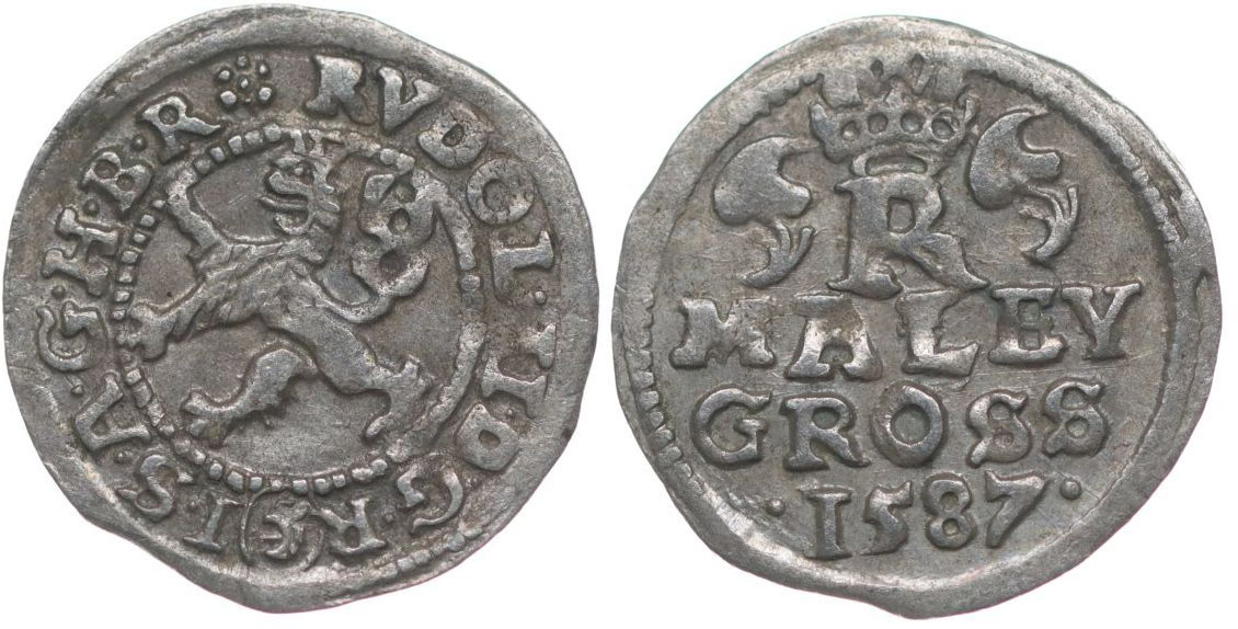 Malý groš 1587, Č.Budějovice-Mattighoffer - s tečkami u letopočtu HN.25a (opis 7a), J.11a