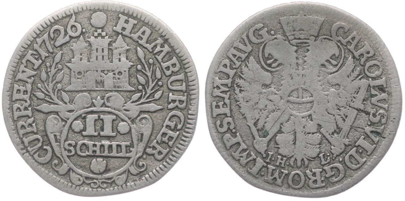 II Šilink 1726 s titulem Karla VI., Sch.22, KM.161