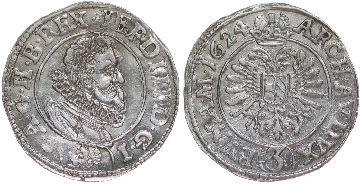 3 Krejcar 1624, Praha-Suttner, J.27a, MKČ.759, Her.1142a