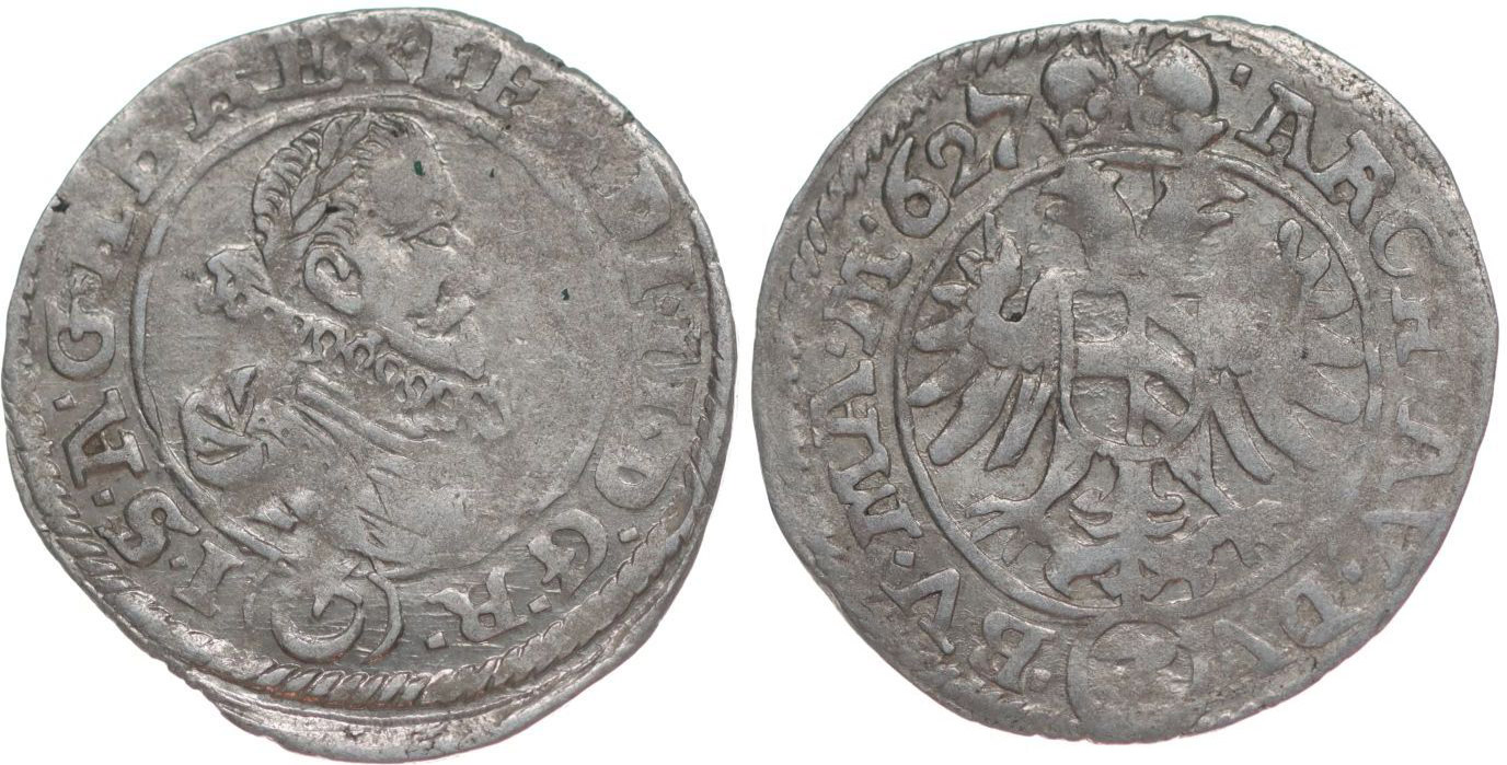 3 Krejcar 1627, Praha-Hübmer, J.28b, MKČ.760, Her.1148b var.let.:627