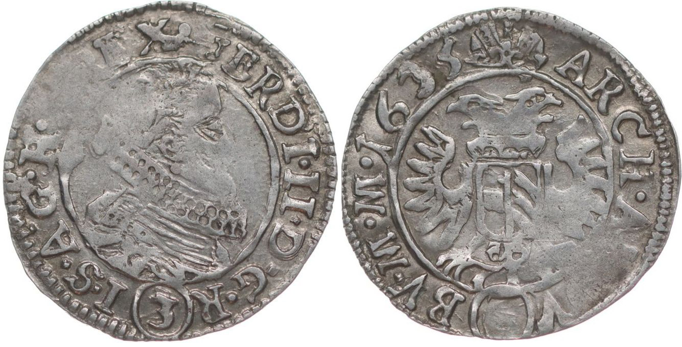 3 Krejcar 1635, K.Hora-Neumann, MKČ.815, J.34b, Her.1188 _č.ned. R!