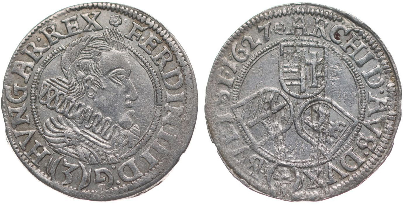 3 Krejcar 1627 HG, Huser Glacensis, Nech.100, MKČ.1328, FS.2829 se značkou mincmistra_R!