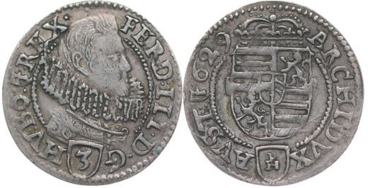 3 Krejcar 1629 PH, Petr Hema, zkrác.let., Nech.113v, MKČ.1335b _n.ned.