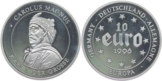 Německo - 10 Euro 1996 - Karel Veliký, Punc.999, ASg 30 mm 8,58 g