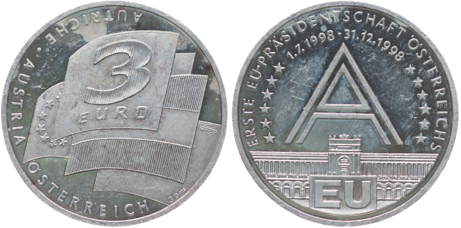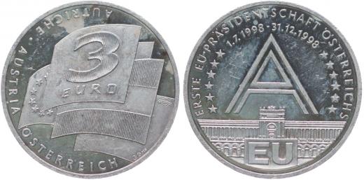 Rakousko - 3 Euro 1998 - 1.prezident EU 1998