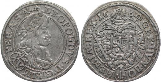 XV Krejcar 1664, Praha-Margalík, Nech.147, MKČ.1407pod., Höll.64.3.2 _dr.v.stř. v av. při okraji