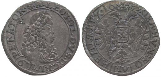 6 Krejcar 1689, Praha-Vaist, Nech.176, Ja.19, Her.1297 _dr.v.stř. v av. R!