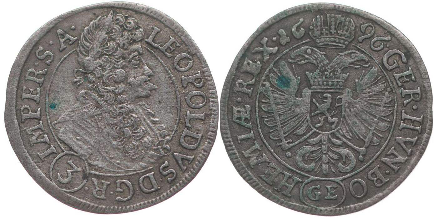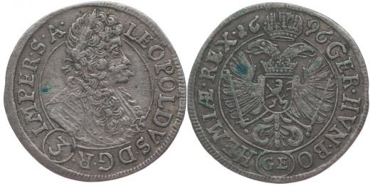 3 Krejcar 1696, Praha-Egerer, Nech.205, MKČ.1428, Ja.10d, Her.1463