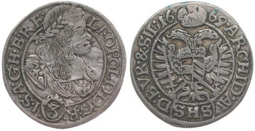 3 Krejcar 1669 SHS, Vratislav-Hammerschmidt, Nech.739, Her.1538 ČS.872 - koruna bez stuh!_R!