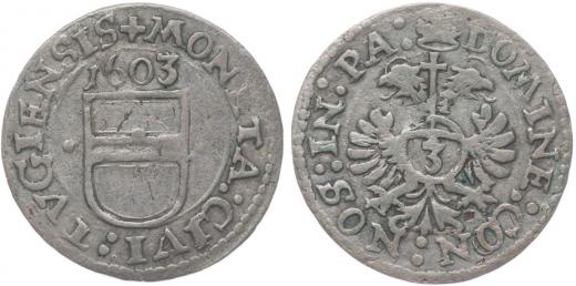 3 Krejcar 1603, Sa.1720/796, HMZ.1076