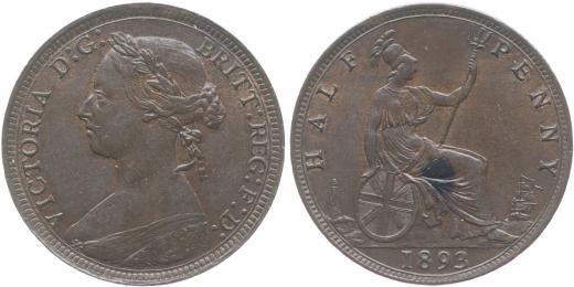1/2 Penny 1893, KM.754, S.3956