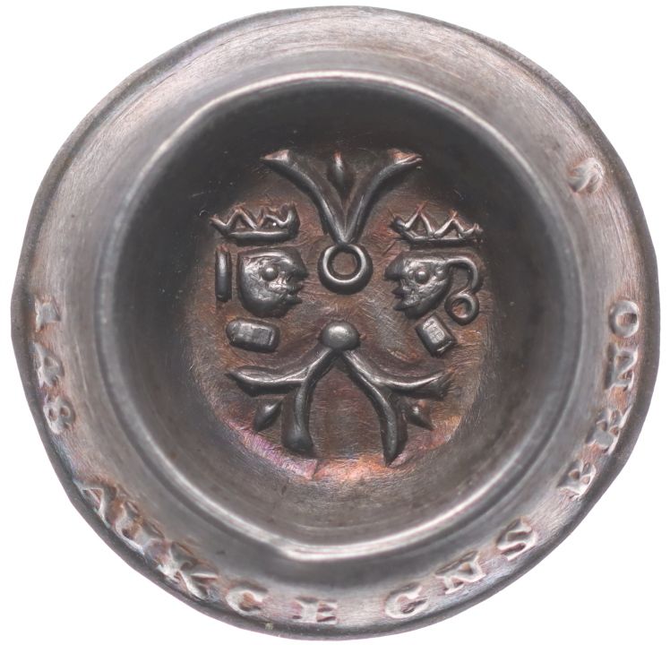 Žeton k 148. aukci brněnské pobočky, 16.10.2004 Replika Brakteátu Václava II., jako C.997 na okraji opis: 148.aukce ČNS Brno, Nesign., Ag 22 mm, 0,7 g nákl.106 ks, Sas.22b, MF.A2/53b