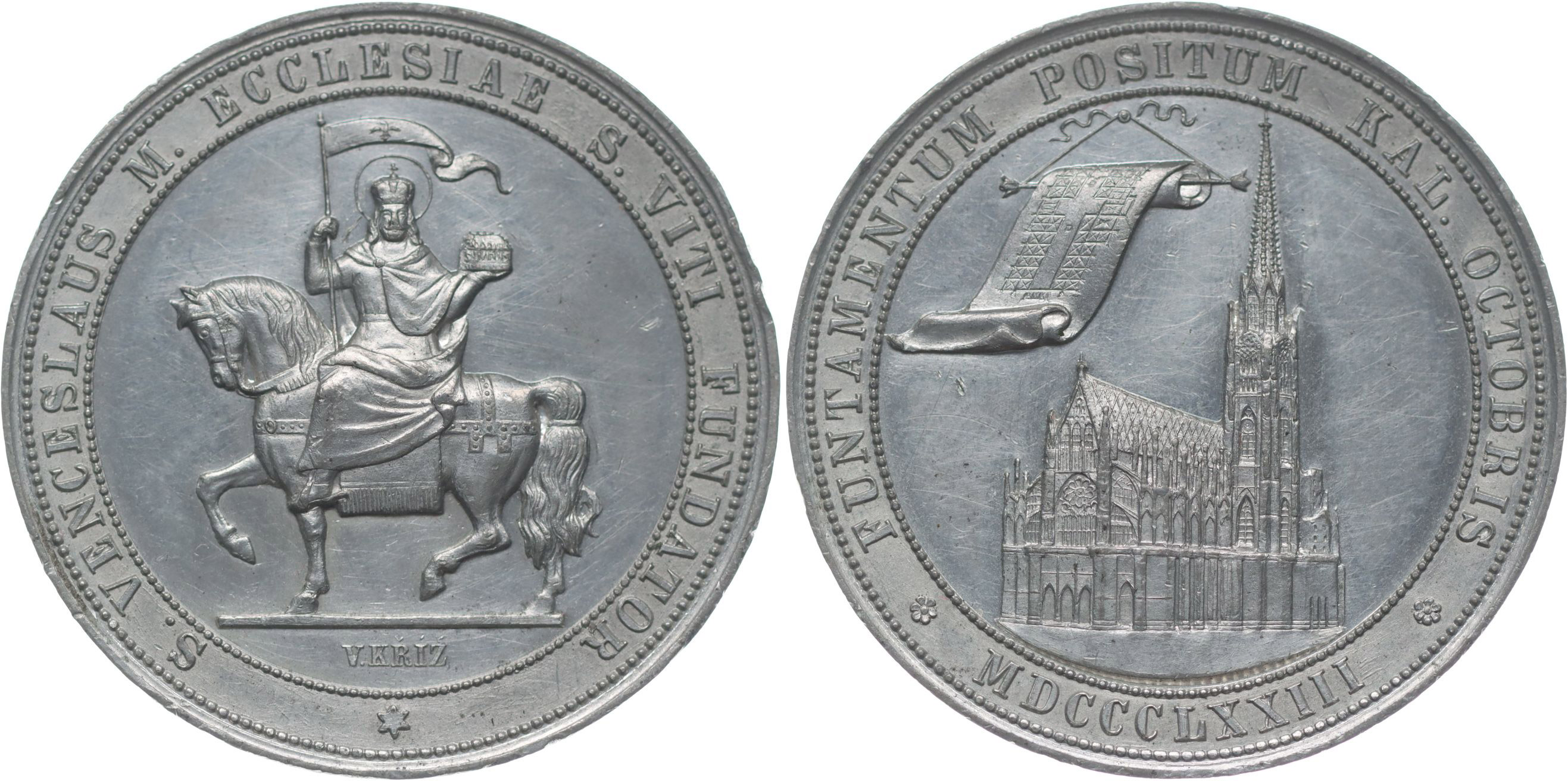 Dostavba chrámu Sv.Víta v Praze, 1873#Sn Sv.Václav na koni s ostatky Sv.Víta, opis / gotická podoba chrámu, opis, Sign., Sn 41 mm, MZČ.164/3