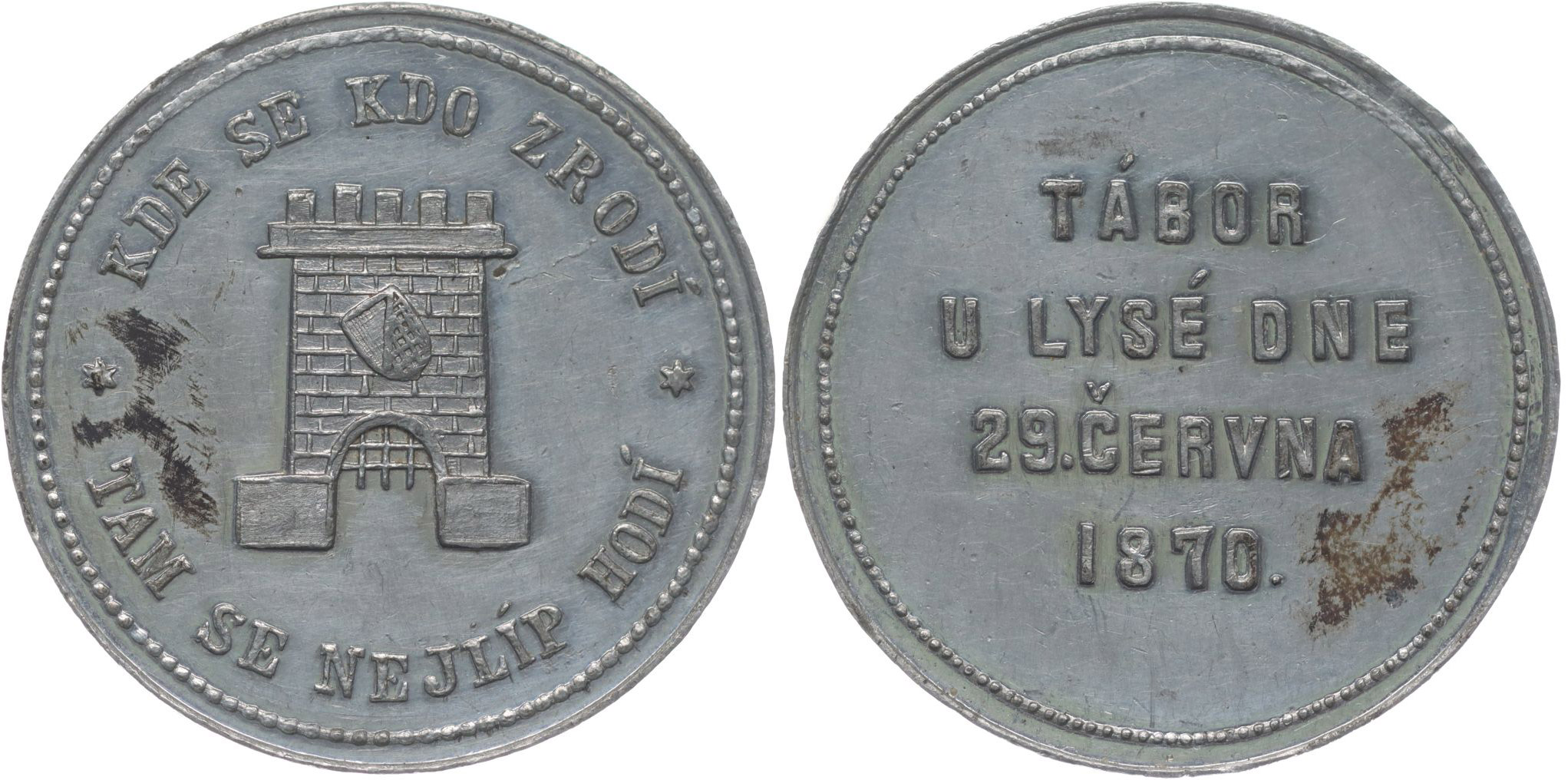 Upomínka na tábor lidu, 29.6.1870 Hradní věž se znakem, opis / 4-řádkový nápis, Nesign., Sn 32 mm