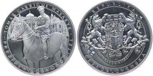 V.Oppl - Tomáš Garique Masaryk - president osvoboditel, b.l. President na koni zleva, opis / velká státní znak, opis Ag 40 mm, 20,21 g_orig.kapsle