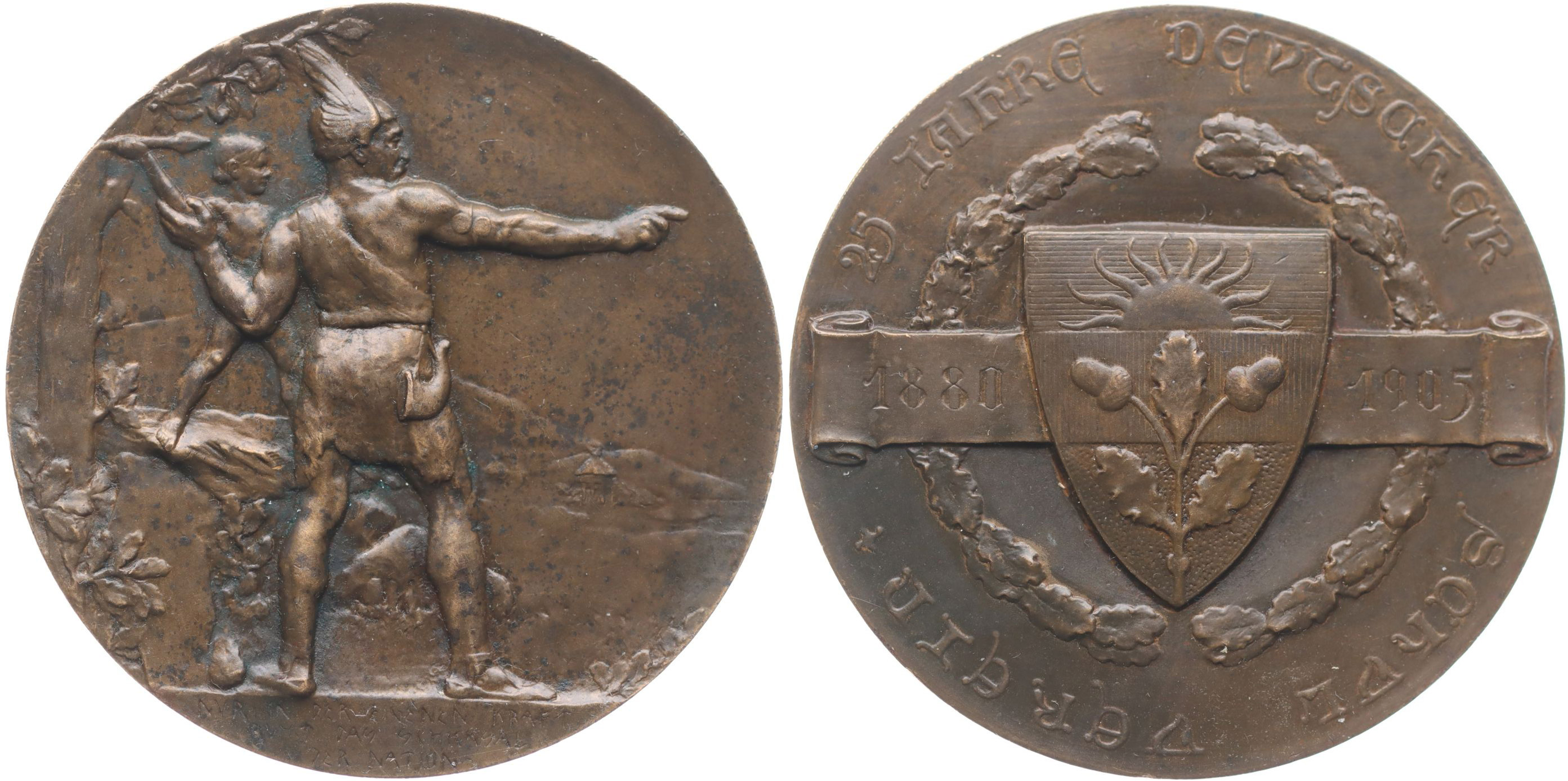 Nesign. - na 25 let německého školského spolku 1880 - 1905 Dva lovci / znak, opis , Bronz 60 mm
