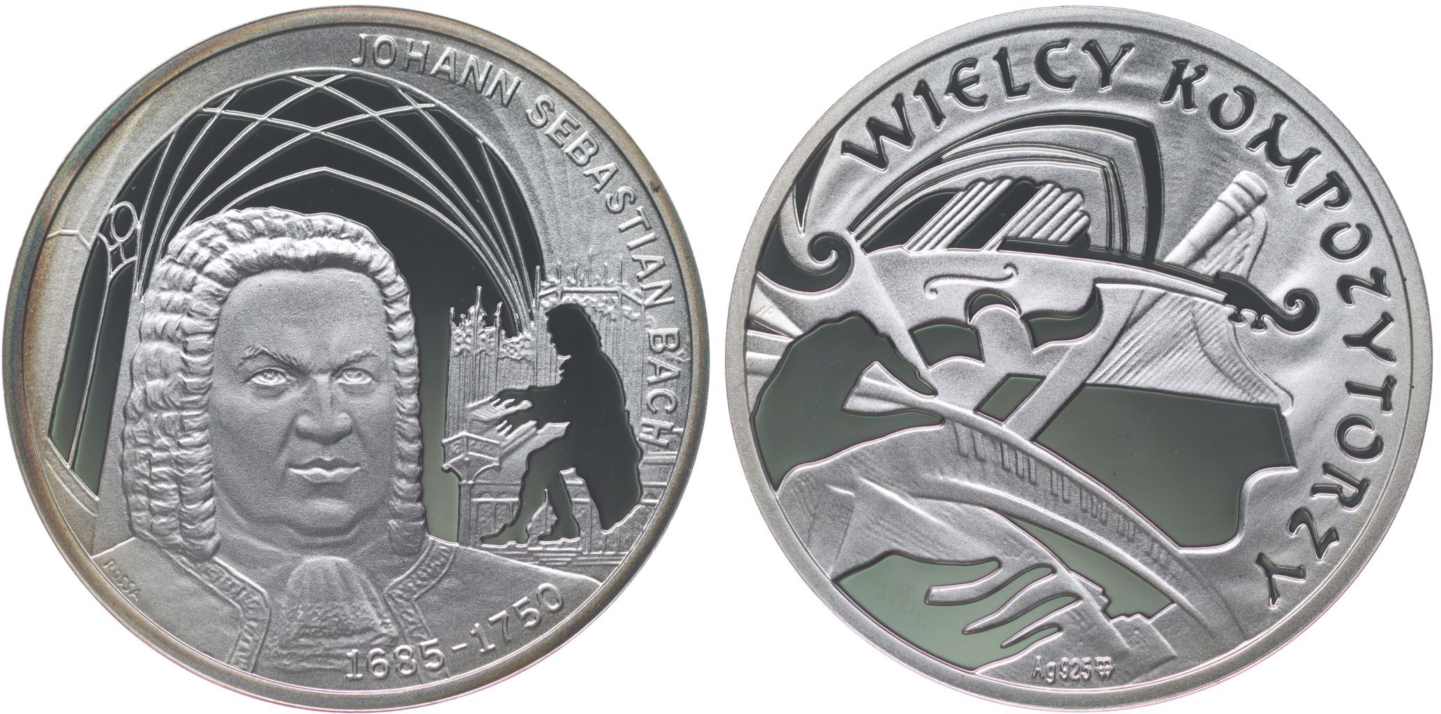 Nesign. - J.S.Bach (1685 - 1750) ze sér.Velcí skladatelé, b.l. Punc.925 Ag 32 mm, 14,16 g_orig.kapsle