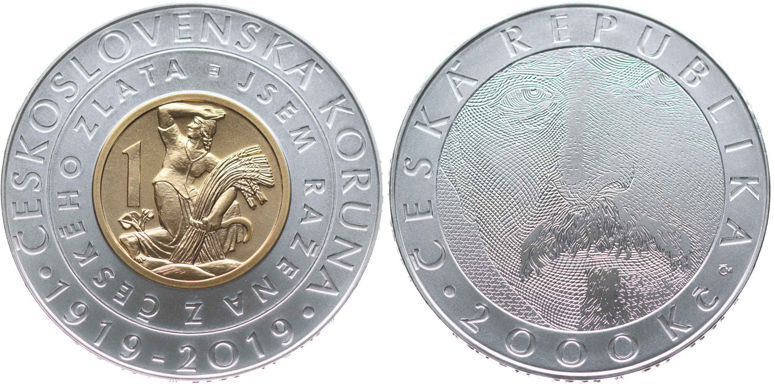 2000 Koruna 2019 - zavedení čs.koruny Au 999.9 3.111 g, Ag 999.9, 31.103 g_orig.etue + kapsle + certifikát