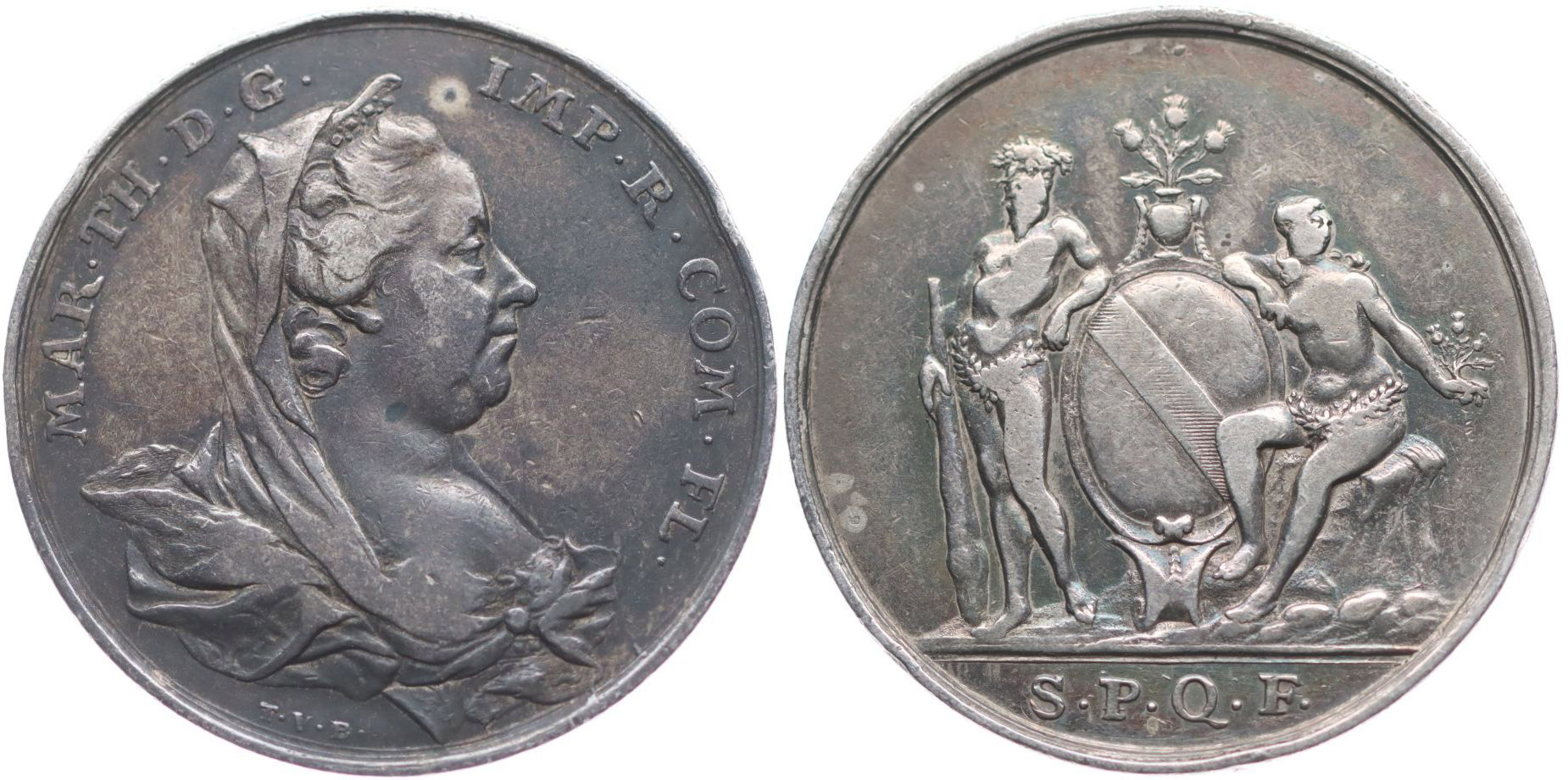 T.V.Berckel - medaile pro Flandry b.l. (1779) Poprsí zprava, opis / 2 štítonoši u flanderského znaku - S.P.Q.F. Sign., Ag 29 mm, 7.29 g, Ho.2894, Ken.255_R!