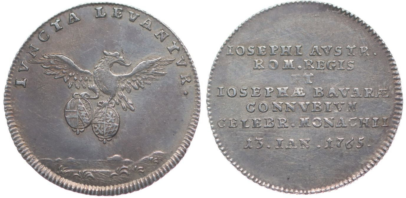 Menší peníz na sňatek s Josefou Bavorskou 13.1.1765 orel se dvěma znaky, opis / 7řádk.nápis, Nesign., Ag 21 mm, 2.16 g, LG.XV/195, We.8172, SD.173.2