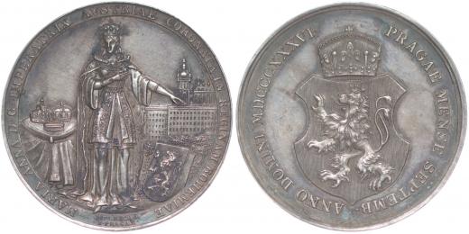 Lerch J.D. - Ag medaile na korunovaci v Praze, 1836 Postava zpředu, Hradčany, koruny / n korunov. štítu český lev, opis, Ag 35 mm, 17.47 g, Nov.XVIII/H-2b, Mo, .2562, Do.3142, ČS.1492