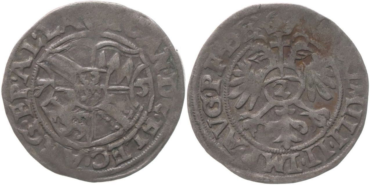 1/2 Batzen (2 Krejcar) 1575 s tit.Maximiliána II., Sa.1943/957 _č.ned. v av. a rev.