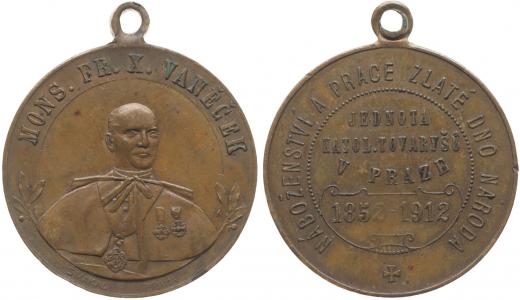 Mons.Fr.X. Vaněček - jednota katol.tovaryšů v Praze 1852 - 1912 Poprsí čelně, opis / 4žádk.nápis, opis, Bronz 34 mm, 12,98 g, Přib.752 _orig.raž.ouško