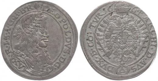 XV Krejcar 1664, Neuburg a.Inn-Triangel, Nech.2033, Höll.64.1.6, Her.1929_R!