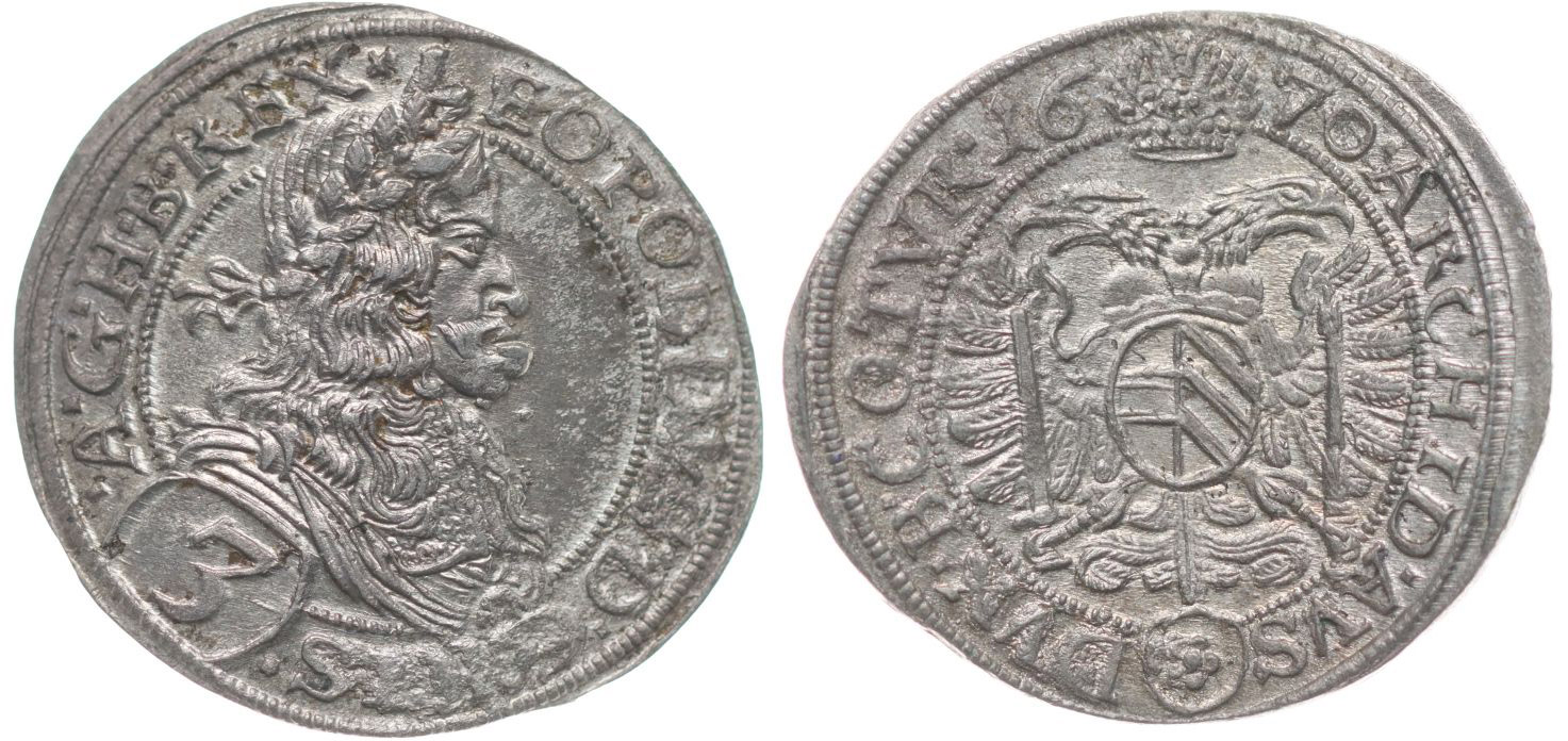 3 Krejcar 1670, Vídeň-Faber, Nech.1968, Her.1317 var.G.R.I.S.-.A.G.H.