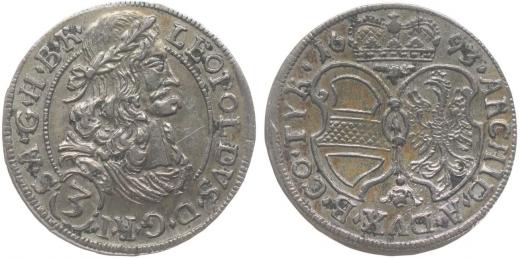 3 Krejcar 1693, Hall, Nech.2457, Her.1439