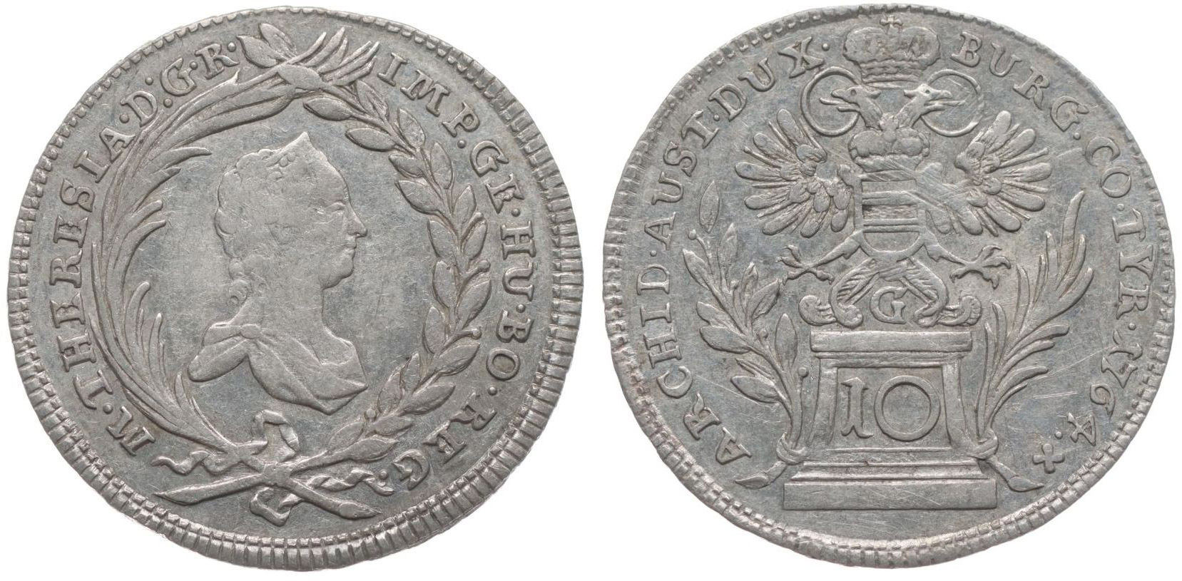 10 Krejcar 1764 G, Günzburg, Nový.33, Her.1179, Eyp.117_dr.ned.