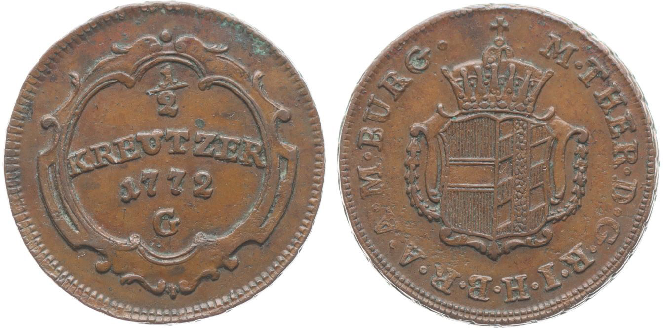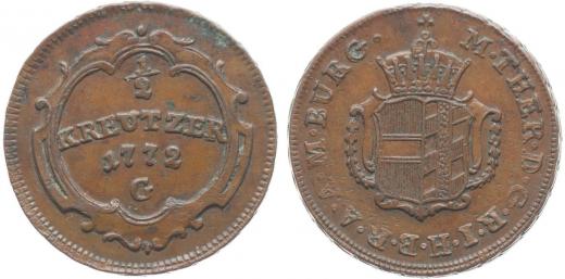 Cu 1/2 Krejcar 1772 G, Günzburg, N.147, Her.1634 - velký typ, Eyp.400 _R!