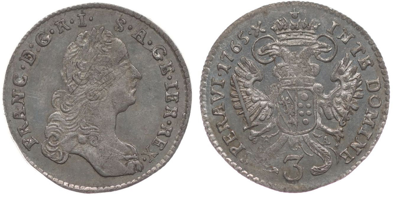 3 Krejcar 1765 H-A, Tyroly-Hall, N.14, Her.565_R!