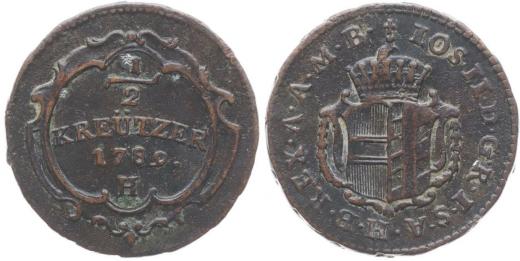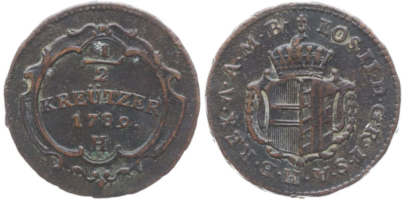Cu 1/2 Krejcar 1789 H (pro Přední Rakousko), Pol.53, Her.445 R!