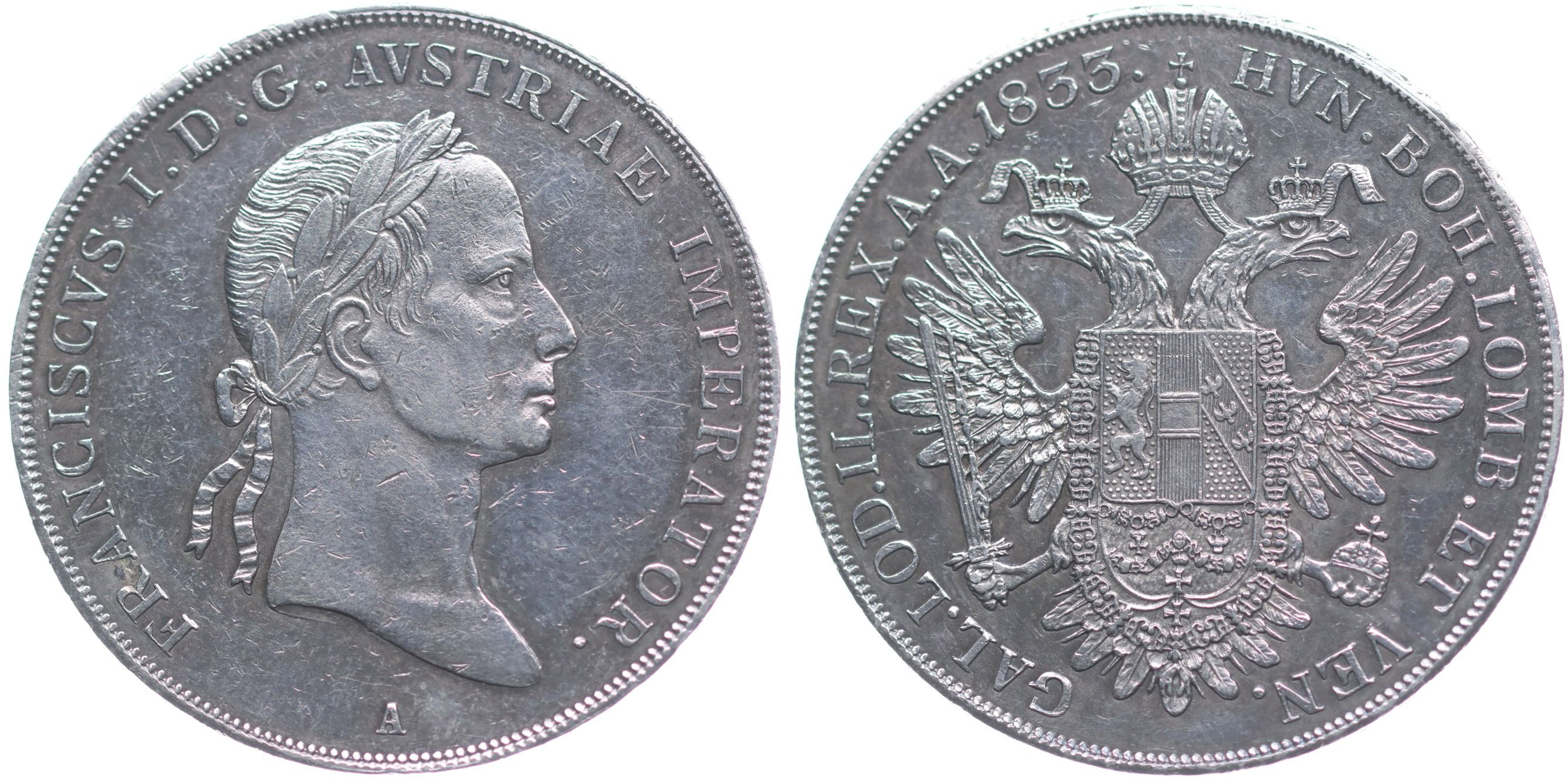 Tolar 1833 A, var.FUNDAMENIVM_dr.rys. v av., dr.hr. v rev. RR!