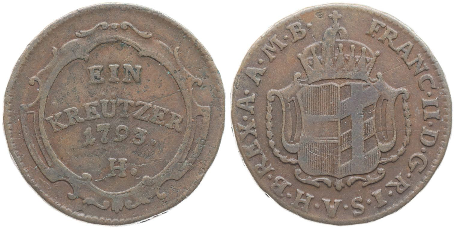Cu Krejcar 1793 H, Günzburg, Her.1071
