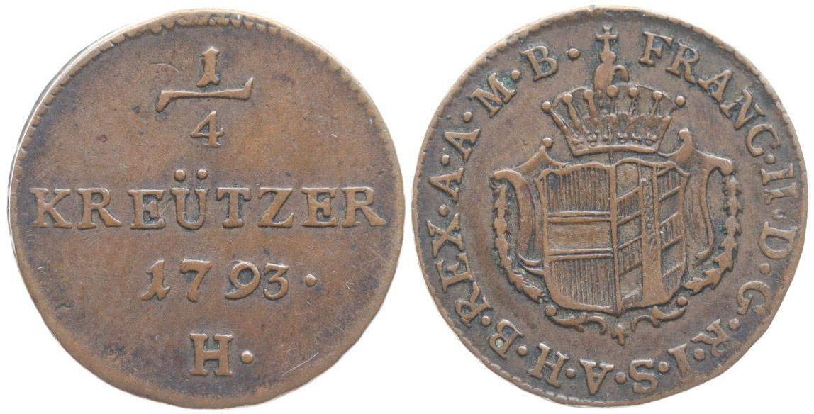 Cu 1/4 Krejcar 1793 H, Günzburg pro Přední Rakousko, Her.1123_R!