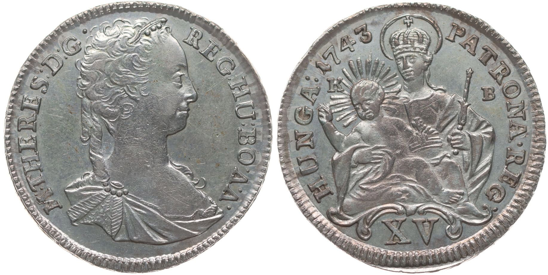 XV Krejcar 1743 KB, N.68, bez tečky za letopočtem, Hus.1711, Her.1109