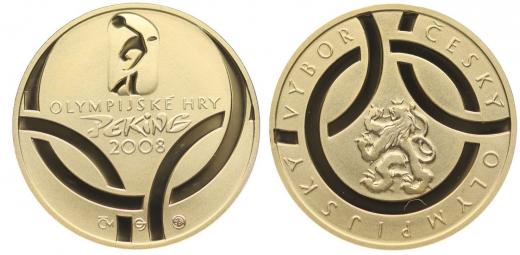 J.Oplíštil - Český olympijský výbor - OH Peking 2008 Punc.999,9 Au 22 mm, 7,78 g_orig.etue + kapsle + certifikát