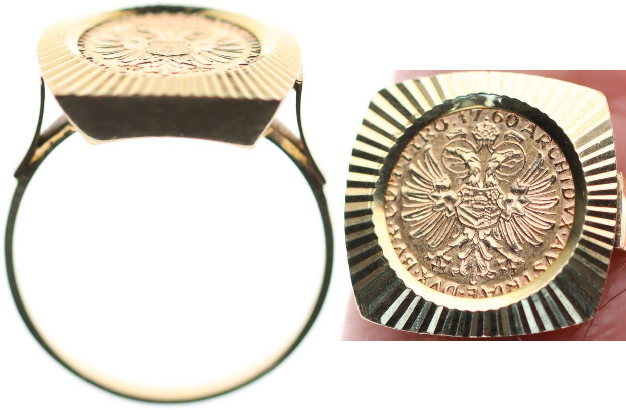 Au prsten se vsazenou medailí (vymyšlenou) Marie Terezie Punc.585, celk.váha 5.59 g